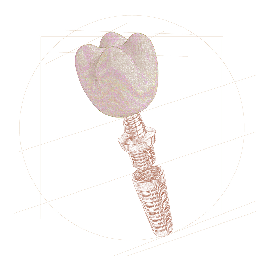 - Surgical Phase: Under local anaesthesia, we place four implants in your jawbone. Thanks to the angled design, the harmony with the bone is perfect!
